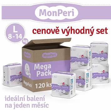 MonPeri Mega Pack L pleny: Velké balení plen velikosti L, ideální pro rodiny s většími dětmi. monperi.cz