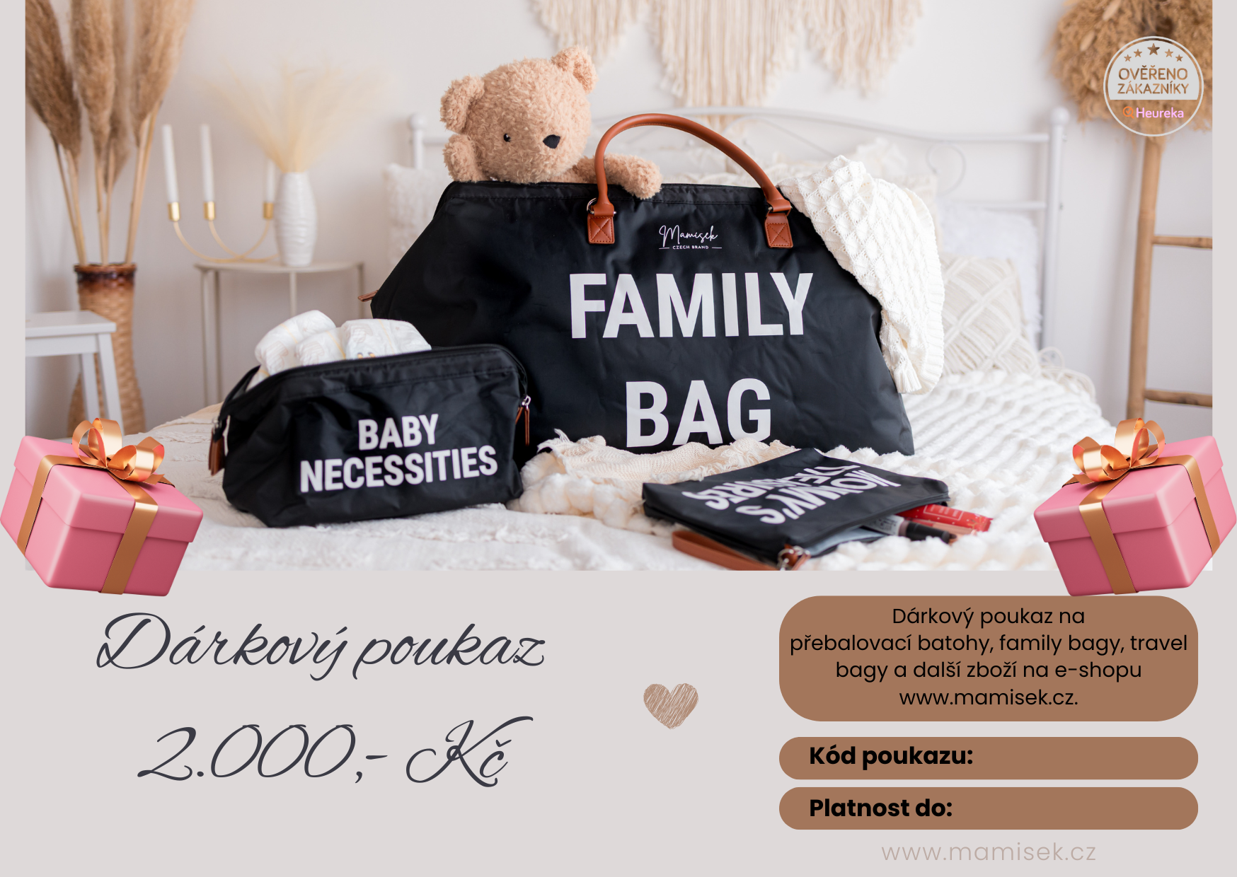 Poukaz platí na nákup family a travel bagů a dalšího zboží u nás na e-shopu.